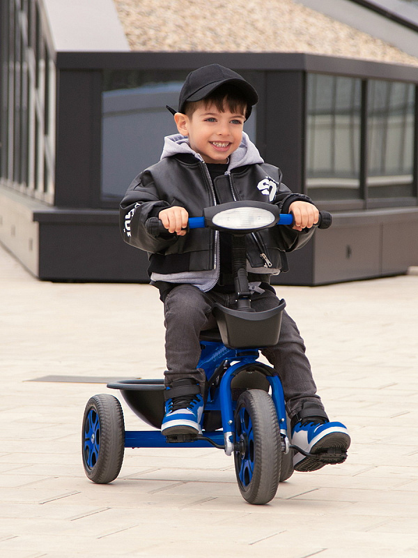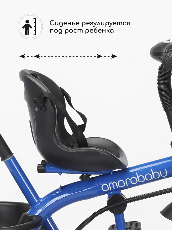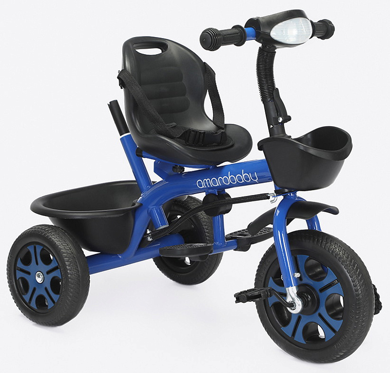 Велосипед трехколесный детский AmaroBaby Legend - легкий и устойчивый трехколесный велосипед для первых поездок малыша, предназначен для детей от 1 года и выдерживает нагрузку до 25 кг. Он не только доставит удовольствие от катания, но и научит ребенка держать равновесие и тренировать координацию. Велосипед подходит как для девочек, так и для мальчиков. Багажник и передняя корзина входят в комплект детского велосипеда, поэтому ребенок и родители могут взять с собой на прогулку игрушки и другие аксессуары. Трехколесный велосипед с ручкой - безопасный, комфортный, красивый и многофункциональный детский транспорт как для малышей, так и для родителей. Велосипед для прогулок имеет эргономичное сиденье с ремнем безопасности, и регулировкой ближе или дальше от руля. Удобные складные подножки велосипеда, не мешают движению, когда малыш крутит педали. У велосипеда нескользящие ручки с ограничителями для удобства и безопасности ребенка. Детский велосипед оснащен музыкой и световой панелью, что сделает прогулку вашего малыша более интересной и веселой. Велосипед для детей весит всего 4,9 кг и легко управляется взрослым с помощью комфортной ручки с подстаканником, которую можно регулировать по высоте. Легкие бесшумные колеса из материала EVA не прокалываются и не требуют подкачки, легко очищаются от загрязнений. Диаметр переднего колеса 24 см, задних колес 20 см. Велосипед для мальчика и девочки разработан для детей дошкольного возраста и легко может служить альтернативой прогулочной коляски.