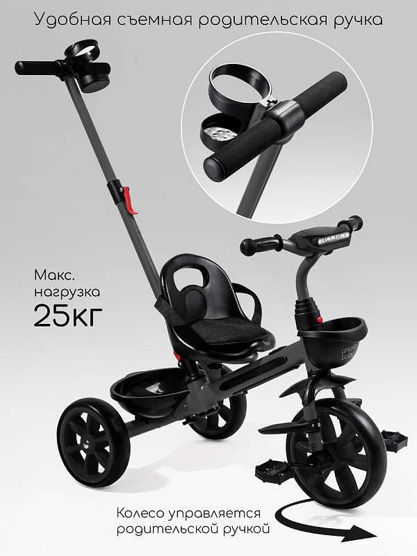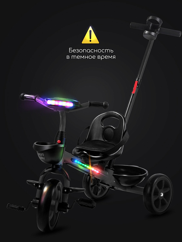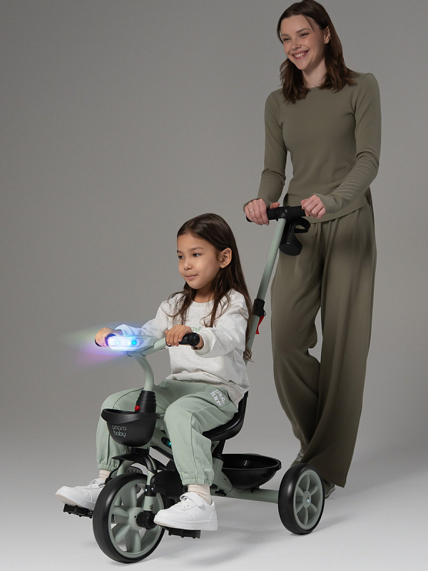 Велосипед трехколесный детский AmaroBaby Scout- идеальный компаньон для вашего маленького исследователя, который только начинает открывать мир. Разработанный для детей от 1 года и рассчитанный на вес до 25 кг, велосипед детский сочетает в себе безопасность, комфорт и развлечения, делая каждую прогулку незабываемой. Но настоящие чудеса начинаются с динамичной LED-подсветкой рамы и руля, которая создает эффектное свечение, и встроенной музыкой, которая сделает каждую поездку веселее.