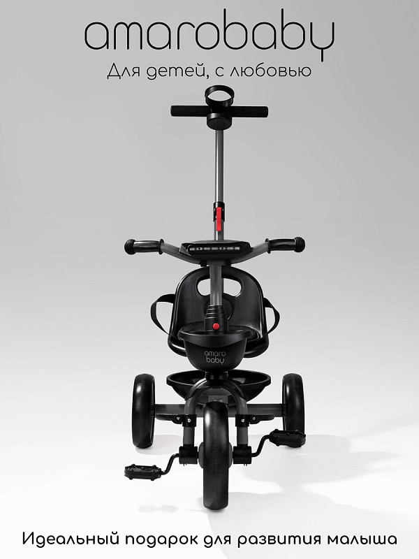 Трехколесный велосипед оснащен педалями и двумя корзинами – спереди и сзади – куда можно сложить игрушки или мелкие вещи. В комплекте есть практичный подстаканник. Велосипед AmaroBaby Scout – это больше, чем просто велосипед, это портал в мир захватывающих открытий для вашего ребенка!