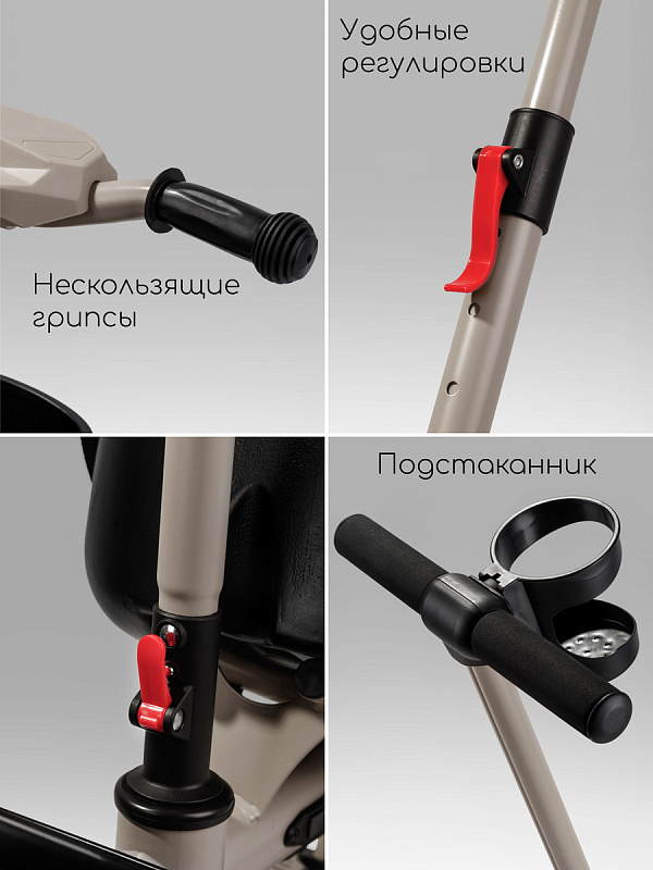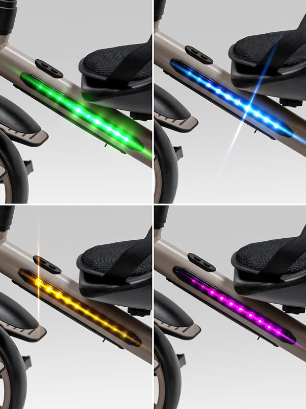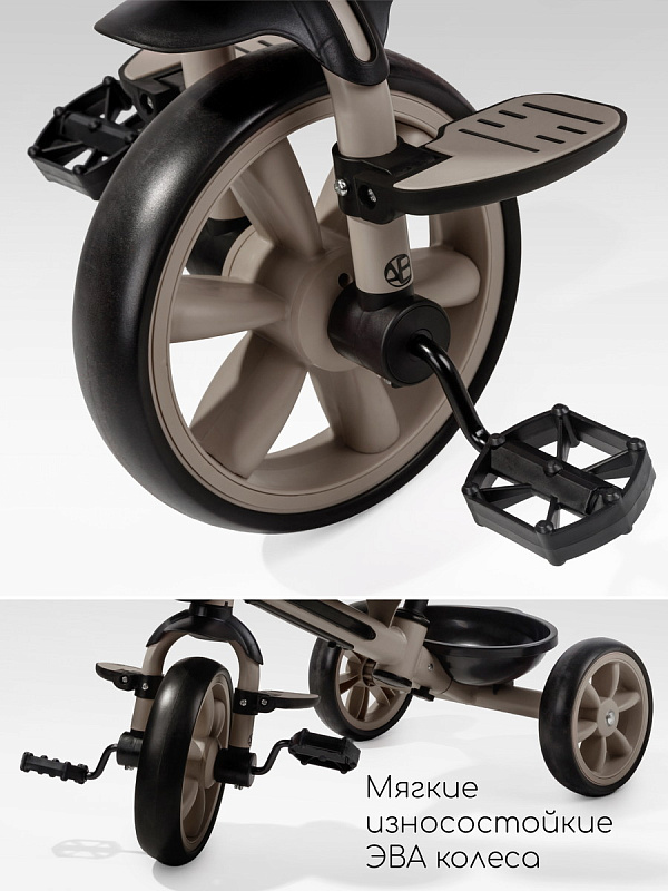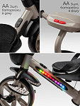 Всеми функциями – переключением музыки и режимов подсветки – малыш сможет легко управлять сам благодаря удобному расположению кнопок. Родители оценят удобную родительскую ручку, которая не только позволяет полностью контролировать движение велосипеда, но и регулируется по высоте, подстраиваясь под рост взрослого. Для максимального комфорта малыша предусмотрены специальные подножки, где он сможет удобно расположить ножки во время поездки. Большие, проходимые колеса из прочного EVA-материала не боятся проколов и обеспечивают плавное движение по различным поверхностям, а эргономичное сиденье гарантирует комфортную посадку даже во время долгих прогулок.