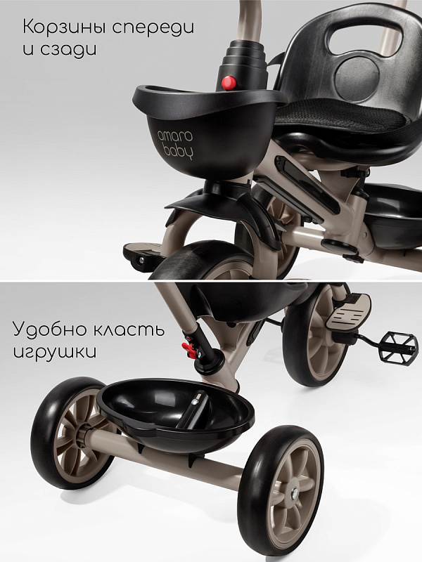 Трехколесный велосипед оснащен педалями и двумя корзинами – спереди и сзади – куда можно сложить игрушки или мелкие вещи. В комплекте есть практичный подстаканник. Велосипед AmaroBaby Scout – это больше, чем просто велосипед, это портал в мир захватывающих открытий для вашего ребенка!