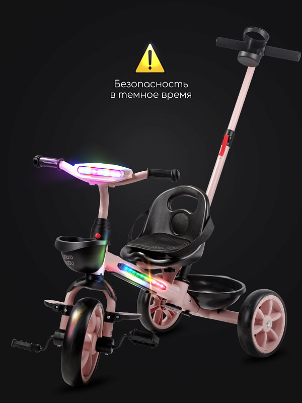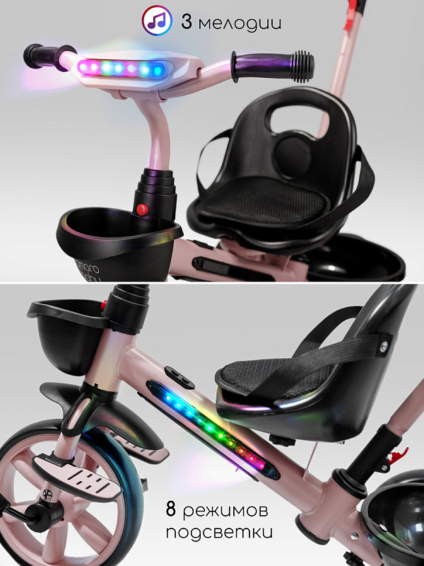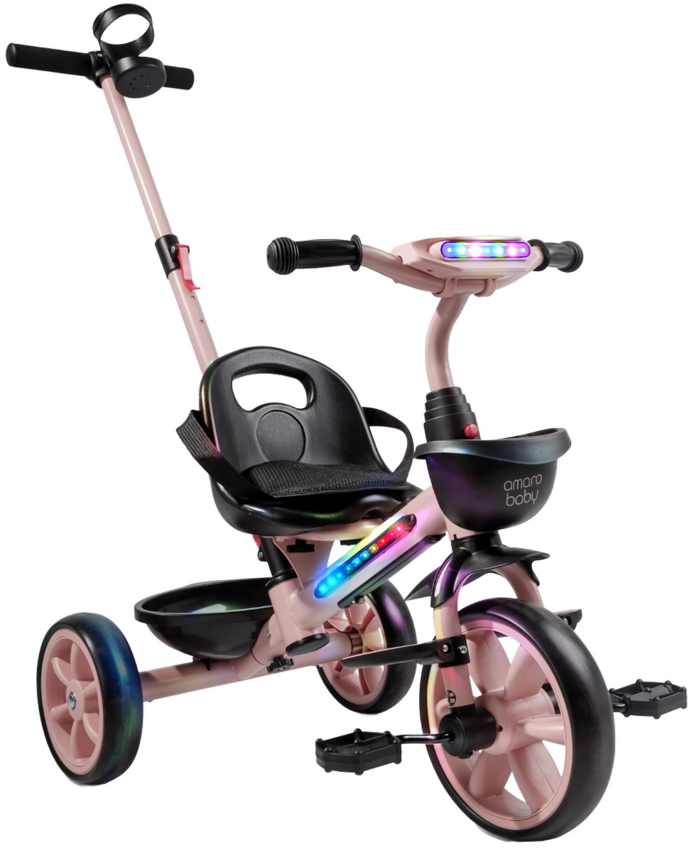 Велосипед трехколесный детский AmaroBaby Scout- идеальный компаньон для вашего маленького исследователя, который только начинает открывать мир. Разработанный для детей от 1 года и рассчитанный на вес до 25 кг, велосипед детский сочетает в себе безопасность, комфорт и развлечения, делая каждую прогулку незабываемой. Но настоящие чудеса начинаются с динамичной LED-подсветкой рамы и руля, которая создает эффектное свечение, и встроенной музыкой, которая сделает каждую поездку веселее.