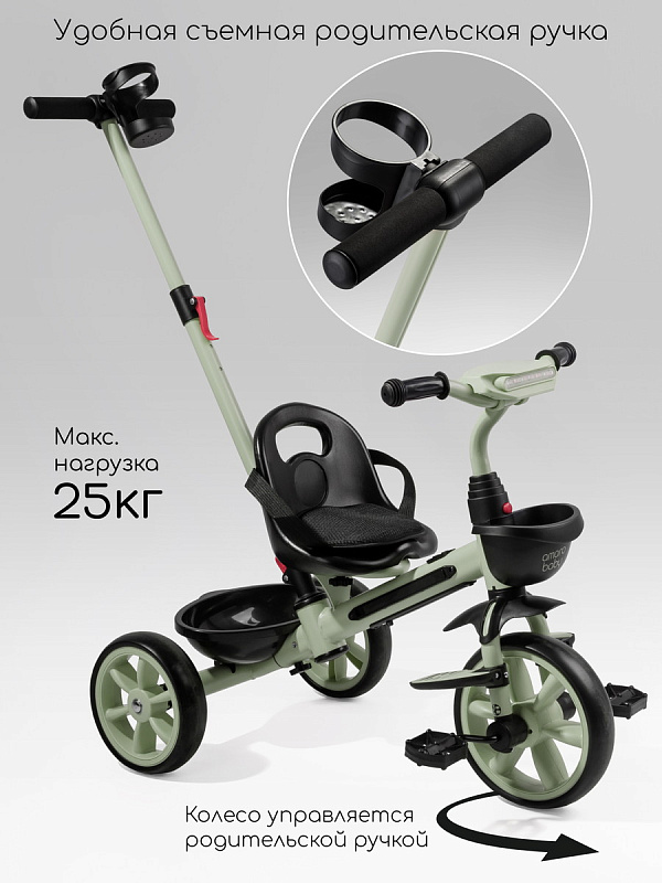 Трехколесный велосипед оснащен педалями и двумя корзинами – спереди и сзади – куда можно сложить игрушки или мелкие вещи. В комплекте есть практичный подстаканник. Велосипед AmaroBaby Scout – это больше, чем просто велосипед, это портал в мир захватывающих открытий для вашего ребенка!