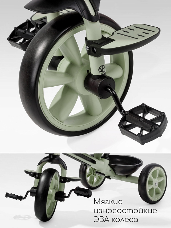 Всеми функциями – переключением музыки и режимов подсветки – малыш сможет легко управлять сам благодаря удобному расположению кнопок. Родители оценят удобную родительскую ручку, которая не только позволяет полностью контролировать движение велосипеда, но и регулируется по высоте, подстраиваясь под рост взрослого. Для максимального комфорта малыша предусмотрены специальные подножки, где он сможет удобно расположить ножки во время поездки. Большие, проходимые колеса из прочного EVA-материала не боятся проколов и обеспечивают плавное движение по различным поверхностям, а эргономичное сиденье гарантирует комфортную посадку даже во время долгих прогулок.