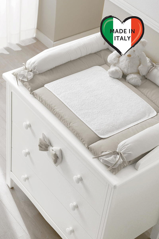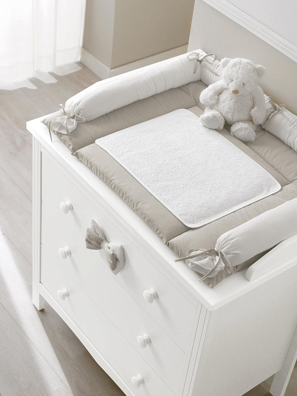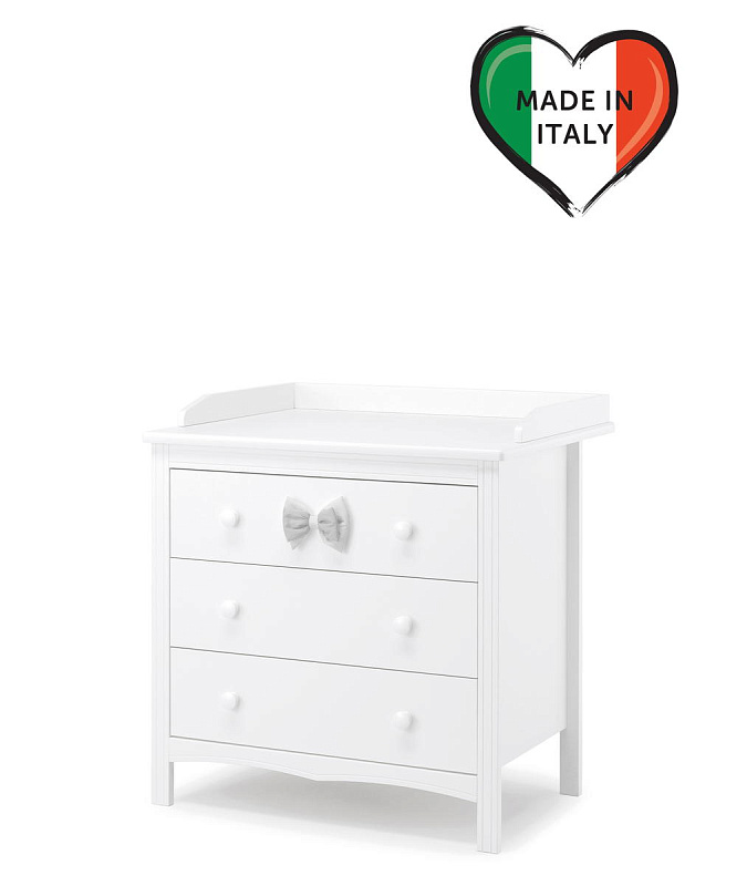 Тумба с пеленальным столом Erbesi Lilli представляет собой прекрасную мебель из эксклюзивной итальянской коллекции для детской комнаты. Она имеет прочный каркас из массива бука, а ящики и фасады выполнены из панелей с нулевым уровнем формальдегидов, покрытых ПВХ материалом. Кроме того, тумба оснащена деревянными ручками и украшена съемным текстильным элементом в виде банта.