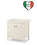 Тумба с пеленальным столом Erbesi Lilli представляет собой прекрасную мебель из эксклюзивной итальянской коллекции для детской комнаты. Она имеет прочный каркас из массива бука, а ящики и фасады выполнены из панелей с нулевым уровнем формальдегидов, покрытых ПВХ материалом. Кроме того, тумба оснащена деревянными ручками и украшена съемным текстильным элементом в виде банта.