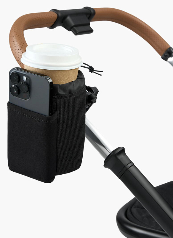 Подстаканник можно закрепить внутри и снаружи рамы коляски