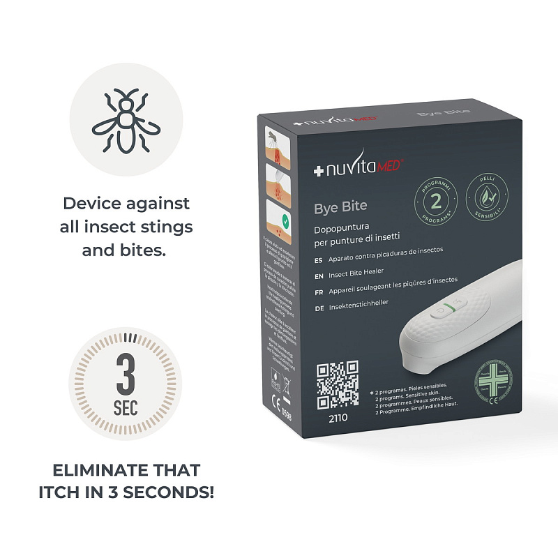 Nuvita Bye Bite устраняет зуд и боль после укусов насекомых за 3 секунды благодаря тепловой терапии, которая ускоряет процесс заживления и снимает дискомфорт и отеки.