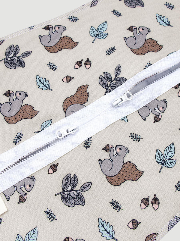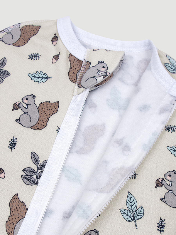 Утеплённый пеленальный кокон Mjölk [мьёльк] Белочки на молнии выполнен из плотного хлопкового трикотажа с небольшим, но тёплым и мягким начёсом на изнаночной стороне. Материал 100% хлопок, приятный на ощупь, согревает и не вызывает аллергии.