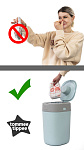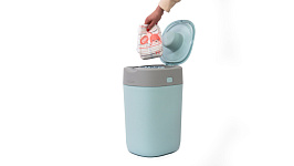 - В интерьере. Компактный утилизатор удобно впишется в любую комнату. Он вмещает до 30 подгузников одновременно (зависит от размера подгузника), что означает меньше походов к мусорному ведру. Плоская крышка открывается у любой стены, что упрощает установку и использование утилизатора.