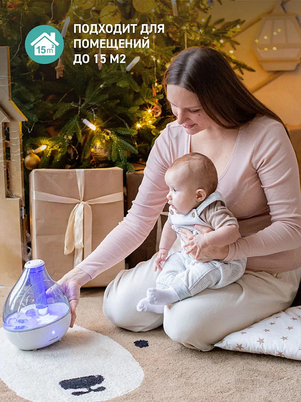 - Прибор справляется с увлажнением в помещении площадью до 15 м2.