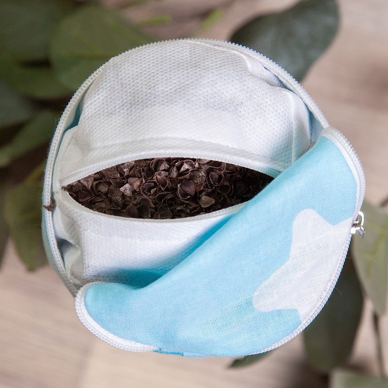 - подушка имеет съемный чехол на молнии, а лузга гречихи дополнительно упакована в отдельный мешочек