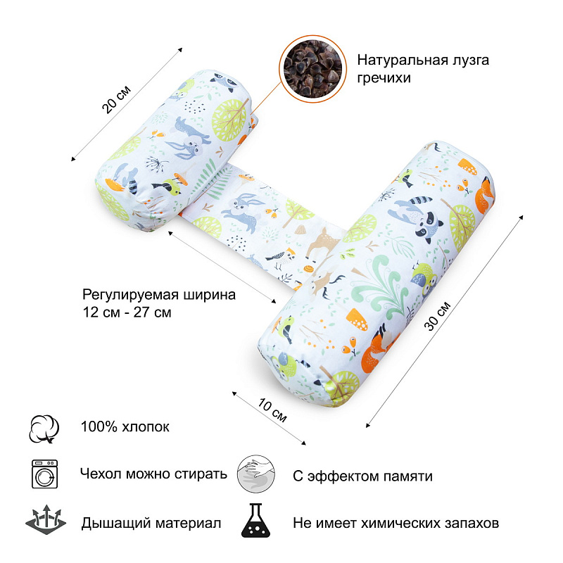 - благодаря особой структуре шелухи, наполнитель легко адаптируется по форме, обеспечивая правильную поддержку и создаёт эффект точечного массажа