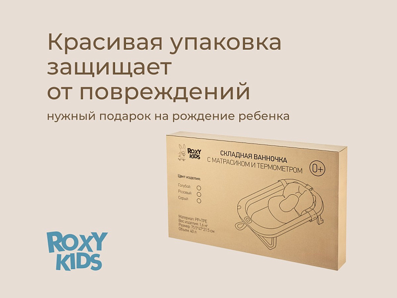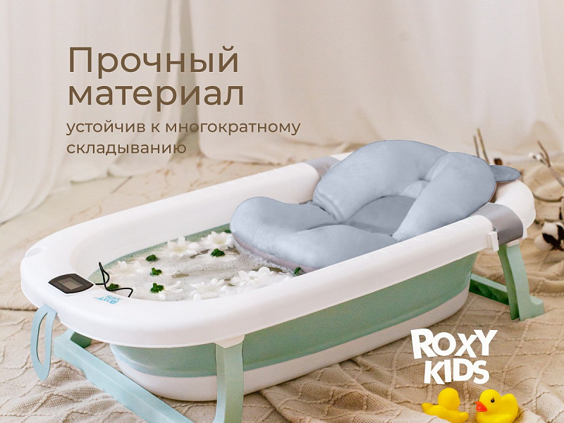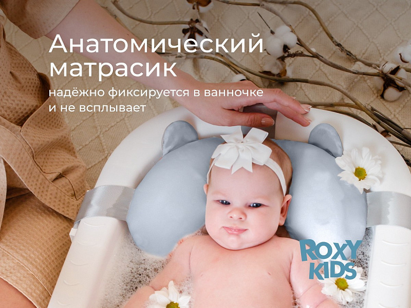 Детская складная ванночка для новорожденных с анатомическим матрасиком от ROXY-KIDS обеспечит комфортное купание с первых дней жизни. Ванночка оснащена мягким анатомическим матрасиком, который легко крепится к бортикам с помощью трех регулируемых ремней и гарантирует надежную фиксацию и комфорт для вашего малыша. Встроенный термометр позволяет легко контролировать температуру воды, а отверстие для душевой лейки облегчает процесс наполнения ванночки. Герметичная пробка обеспечивает легкость и удобство при сливе воды. Ванночка компактно складывается и оснащена петлей для крючка, поэтому не занимает много места при хранении. Ванночка изготовлена из гипоаллергенных материалов с использованием безопасных красителей. Матрасик из дышащей ткани с мягким наполнителем из гранул пенополистирола подстраивается под тело малыша, обеспечивая массажный эффект. Матрасик быстро высыхает в вертикальном положении и легко стирается в режиме бережной стирки. Устойчивые ножки и прочный пластик обеспечивают надежность и безопасность во время купания. Благодаря компактному размеру ванночку можно разместить в ванной, душевой кабине или на полу. В первые месяцы вы сможете купать новорожденного малыша в положении лежа с помощью анатомического матрасика. Когда малыш подрастет и начнет сидеть самостоятельно, горку можно будет снять, после чего противоположная стенка ванночки станет удобной спинкой для поддержки ребенка.