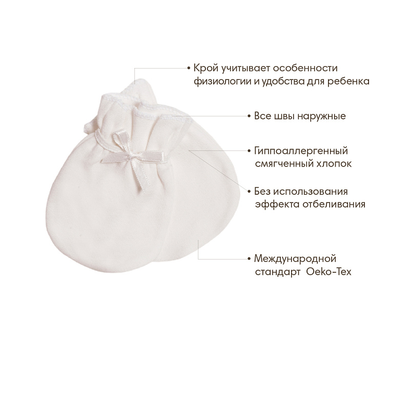 Варежки нецарапки Olant Baby в сеточке Nature белый