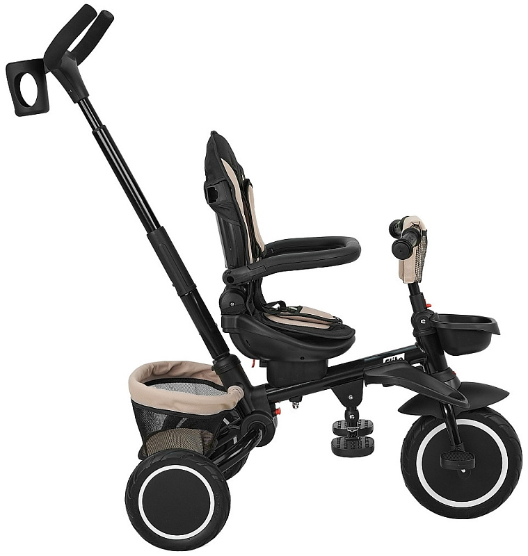 Pituso Elite Plus продуман до мелочей для удобства родителей и детей. По мере роста ребенка, родительская ручка, защитный бампер и козырек снимаются, превращая велосипед в полноценный трехколесный транспорт, которым ребенок сможет управлять самостоятельно. Две вместительные багажные корзины позволят взять с собой все необходимое для прогулки, а текстильная сумочка для мелочей всегда будет под рукой. Защитный капор от солнца укроет от палящих лучей.