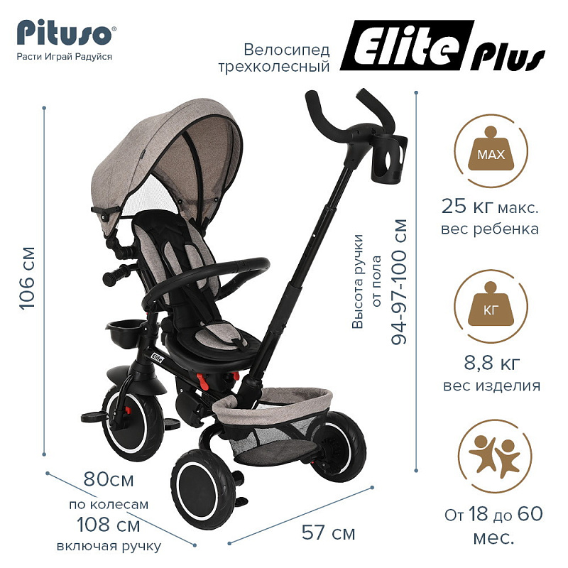 Велосипед трехколесный Pituso Elite Plus Beige/Бежевый