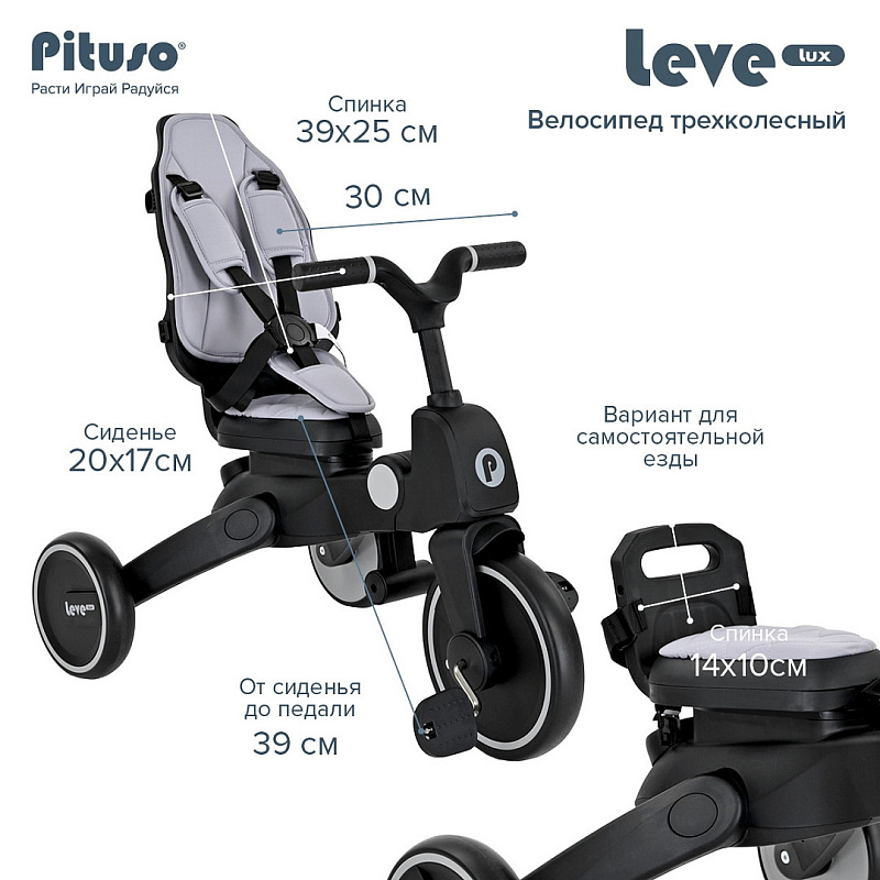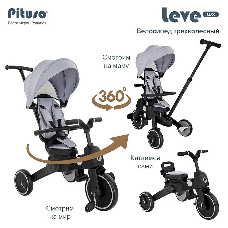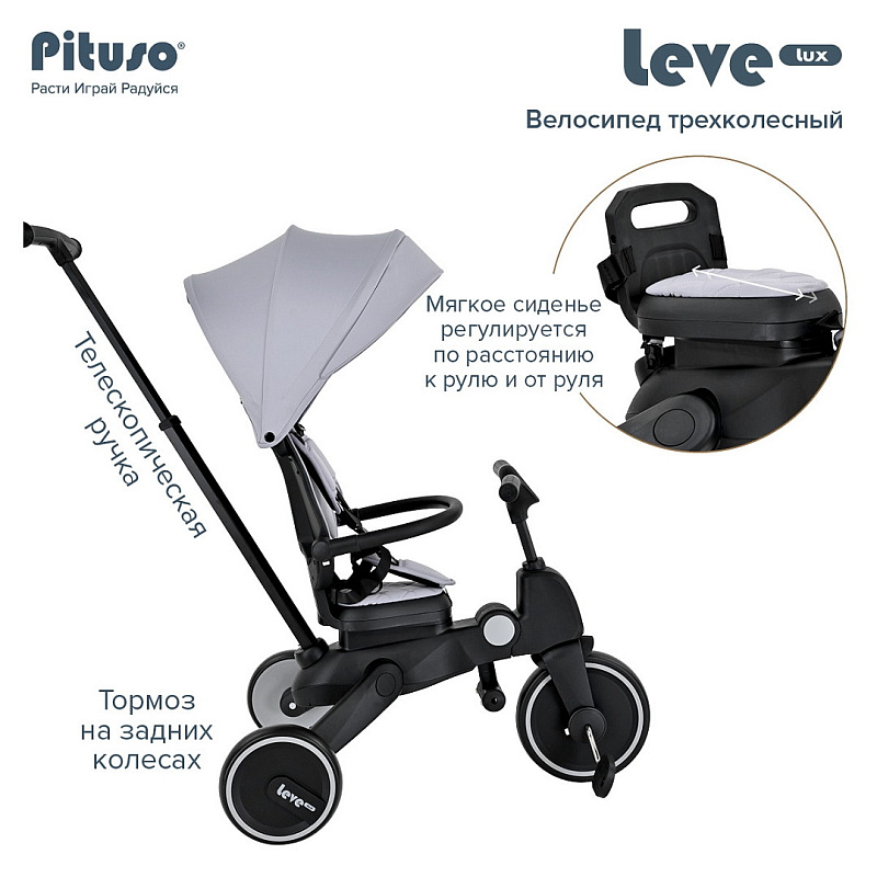 Велосипед трехколесный Pituso Leve Lux Grey/серый