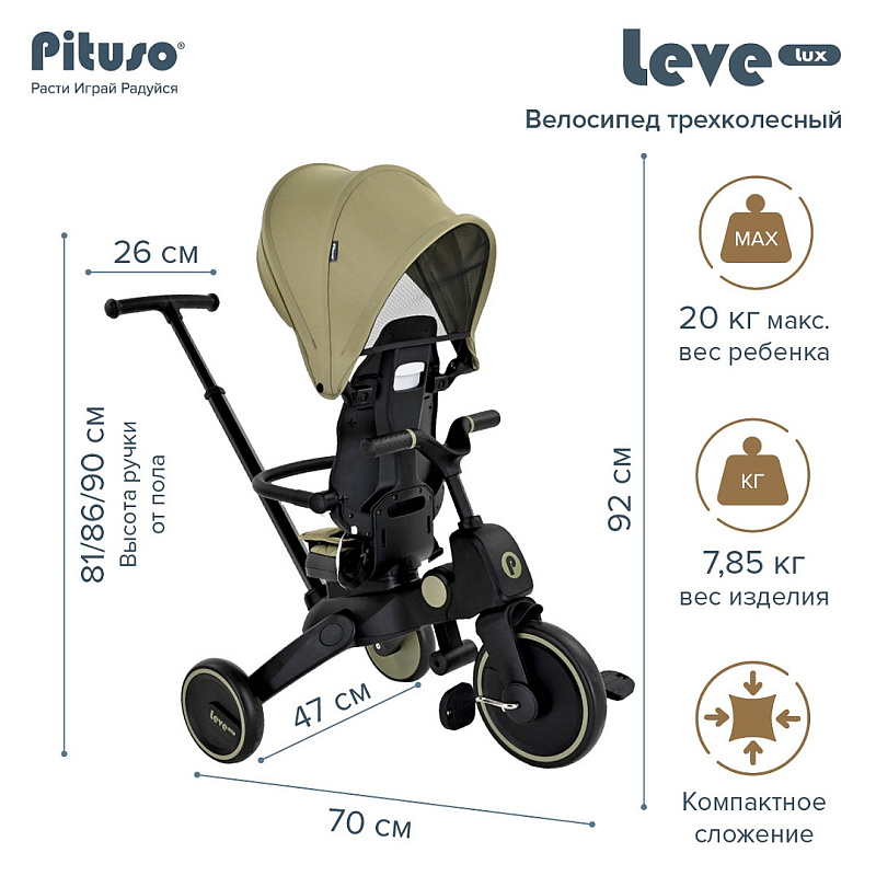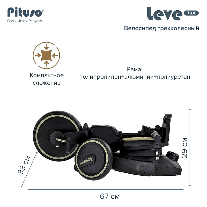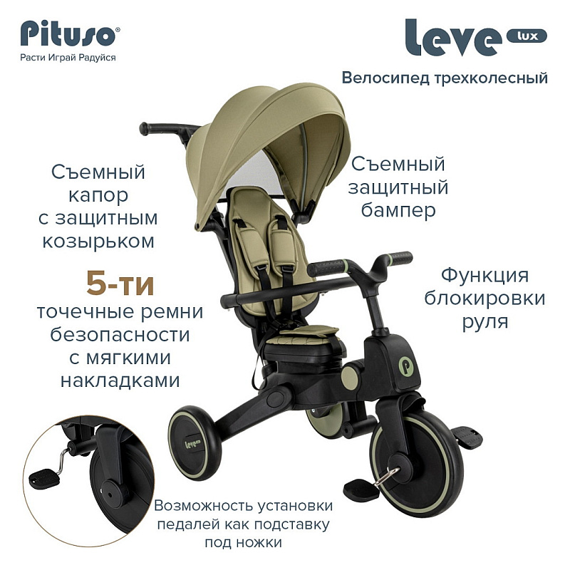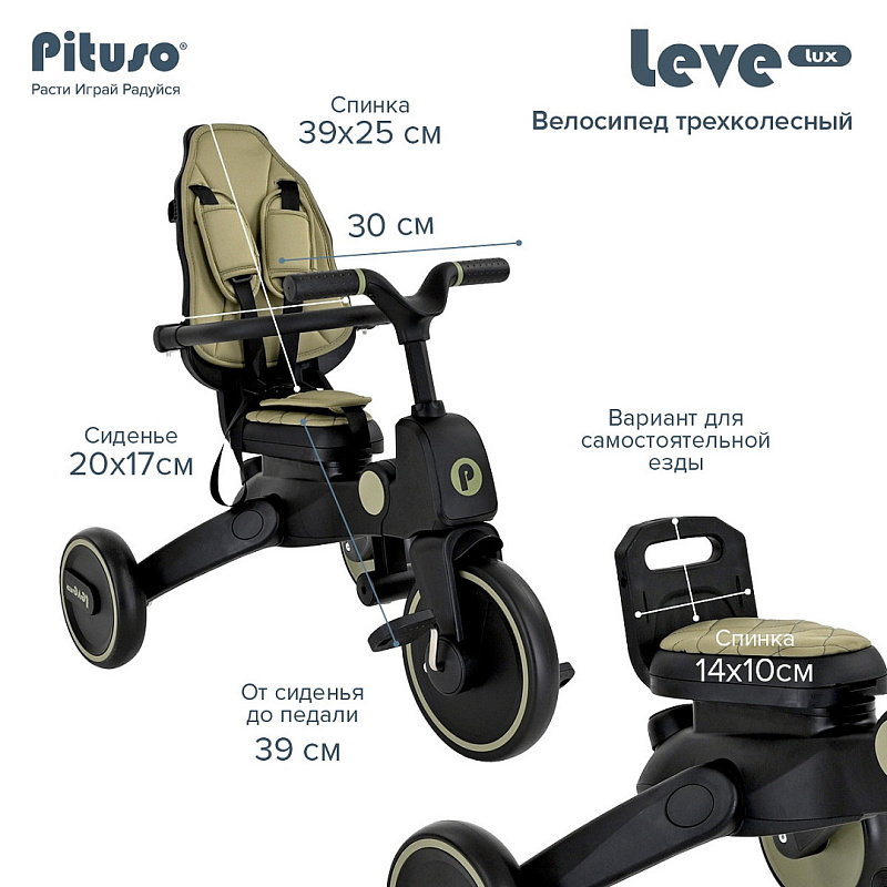 Велосипед трехколесный Pituso Leve Lux Khaki/Хаки