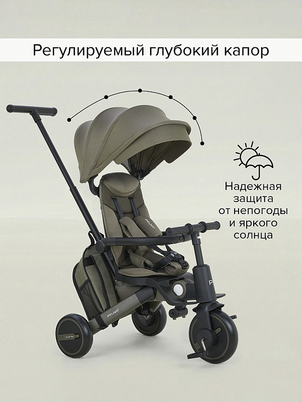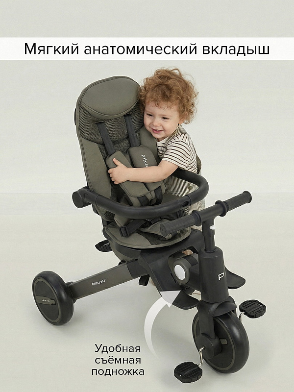 Велосипед трехколесный Pituso Leve Pro складной, с сумкой 2026 Khaki/Хакки(серая рама)Нет оценокХарактеристики