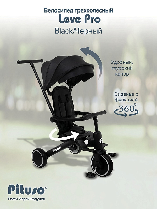 Велосипед трехколесный Pituso Leve Pro складной, с сумкой Black/Черный