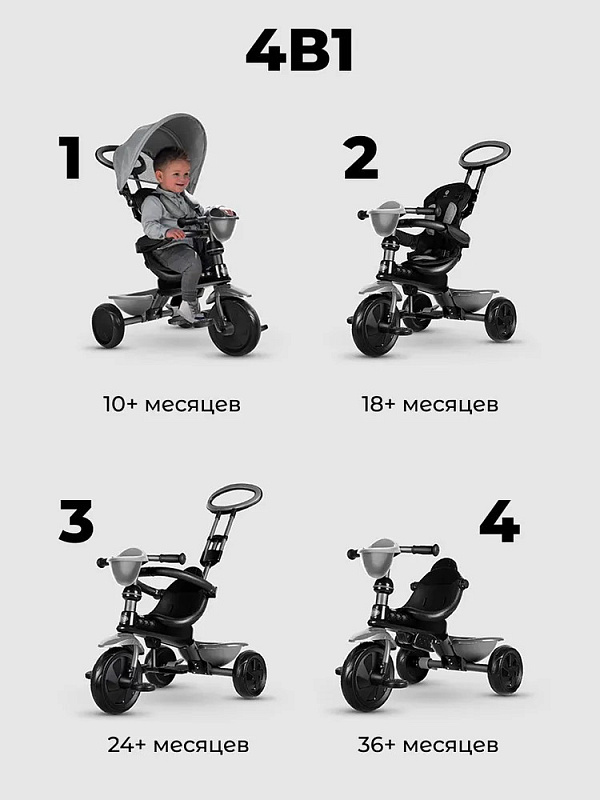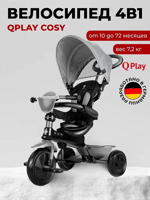 QPlay Cozy – это велосипед коляска трансформер , которая сочетает в себе удобство коляски и функциональные возможности детского трехколесного велосипеда. Адаптация для малышей от 10 месяцев и растет вместе с ребенком, превращаясь из детского велосипеда с ручкой в полноценный трехколесный детский велосипед.