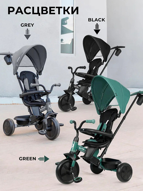 Благодаря тому, что родительская ручка, капюшон и чехол сиденья снимаются, Qplay Elite Platinum будет служить классическим трехколесным велосипедом для подросших детей.