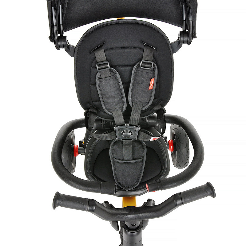 Трёхколёсный велосипед оснащён лёгкой и компактной системой складывания для комфортного перемещения и удобства хранения. Сиденье с функцией "360" - положение ребенка по ходу движения и против хода движения.