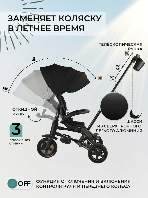 С трехколесным велосипедом-коляской 6 в 1 QPlay Rider ваши семейные прогулки станут яркими и запоминающимися! 6 вариаций использования, телескопическая родительская ручка, позволяющая управлять велосипедом одной рукой, прочная алюминиевая рама, а также множество функций и регулировок делают этот велосипед для детей идеальным для использования.