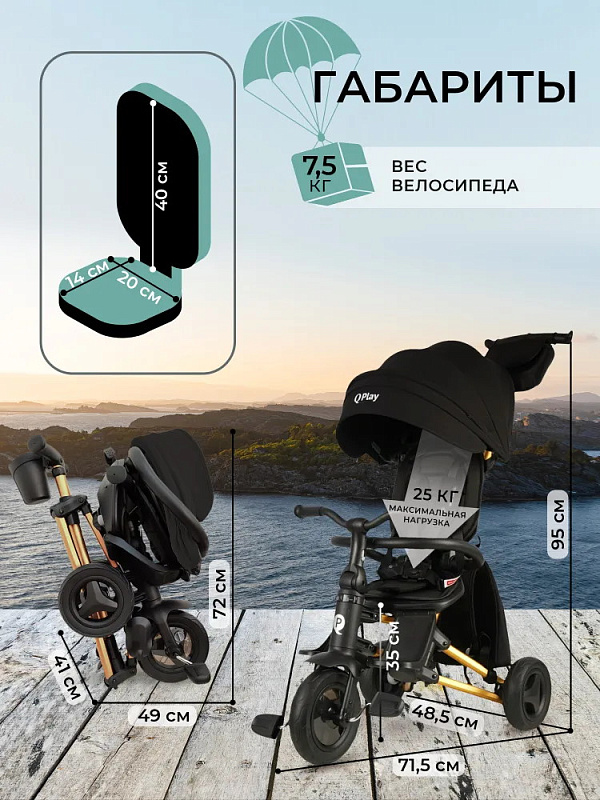 Велосипед трехколесный Qplay Rider SL S700-17 427528 Black (Rub/Gold)