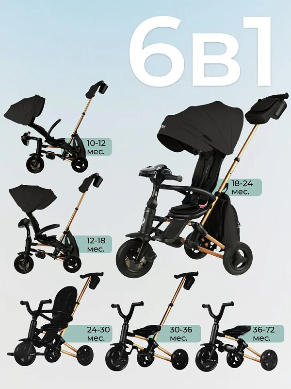 - Целых 6 вариантов использования: велосипед коляска для малышей легко трансформируется в трехколесный велосипед для подросших детей;