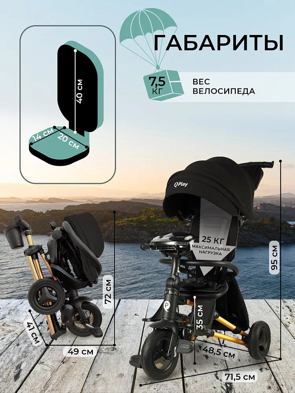 Велосипед трехколесный Qplay Rider SM S700-17 427531 Black (Rub/Gold)