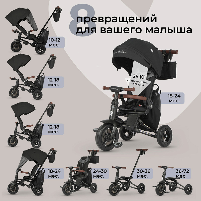 Представляем вам многофункциональный велосипед QPlay Nova Deluxe 8в1, который станет надежным спутником для ваших прогулок с малышом! Этот уникальный велосипед сочетает в себе стильный дизайн, высокое качество и множество функций, что делает его идеальным решением для детей от 10 месяцев до 6 лет.