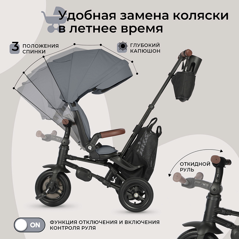 Велосипед трехколесный Qplay S702 Nova Deluxe 427500 Stone Grey
