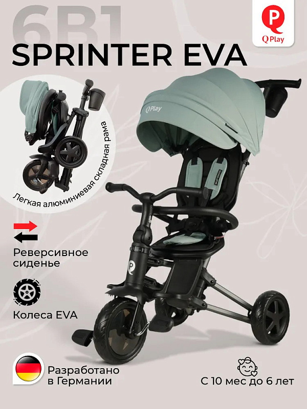 Велосипед трехколесный Qplay Sprinter S700-16 427495 Mint (EVA/Graphite)