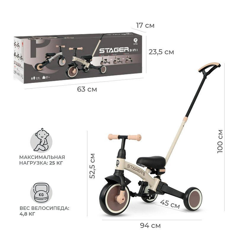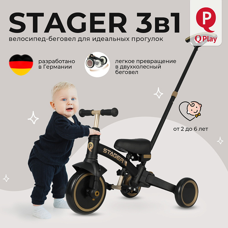Велосипед – беговел 3 в 1 Qplay Stager (Кьюплей) — это уникальное средство передвижения для детей от 2 до 6 лет, обладающее множеством функций. Ребенок может самостоятельно выбирать, на каком транспорте отправиться на прогулку: на двухколесном беговеле или трехколесном велосипеде, а также решать, ехать самостоятельно или попросить родителей о помощи. Элегантный дизайн, легкий вес и простота в регулировках делают его прекрасным подарком для любого праздника.