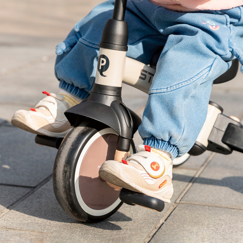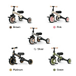 - 3 режима использования: беговел, трехколесный велосипед с педалями, детский трехколесный велосипед с родительской ручкой;