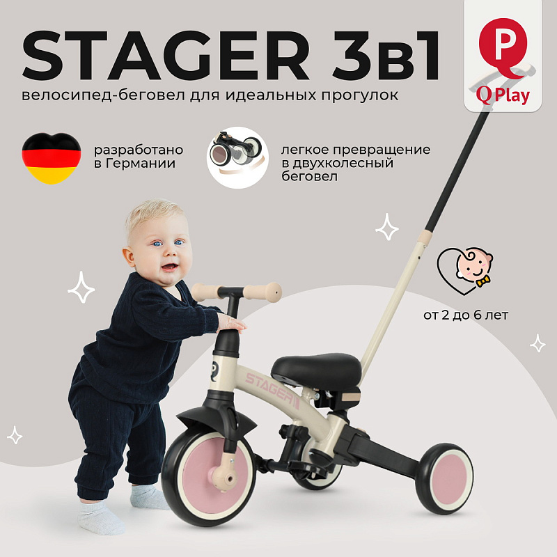 Велосипед – беговел 3 в 1 Qplay Stager (Кьюплей) — это уникальное средство передвижения для детей от 2 до 6 лет, обладающее множеством функций. Ребенок может самостоятельно выбирать, на каком транспорте отправиться на прогулку: на двухколесном беговеле или трехколесном велосипеде, а также решать, ехать самостоятельно или попросить родителей о помощи. Элегантный дизайн, легкий вес и простота в регулировках делают его прекрасным подарком для любого праздника.