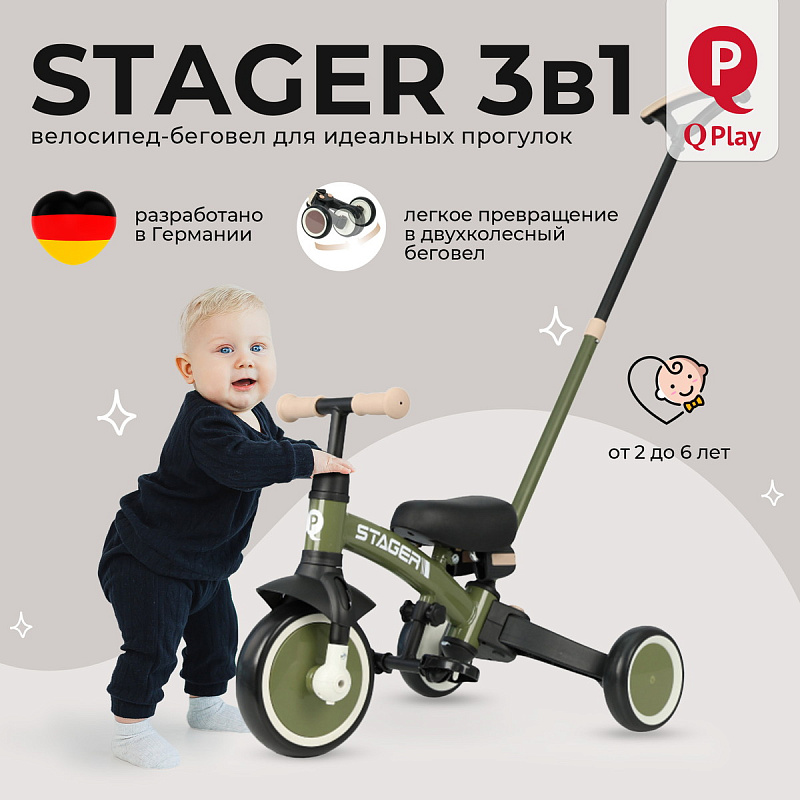 Велосипед – беговел 3 в 1 Qplay Stager (Кьюплей) — это уникальное средство передвижения для детей от 2 до 6 лет, обладающее множеством функций. Ребенок может самостоятельно выбирать, на каком транспорте отправиться на прогулку: на двухколесном беговеле или трехколесном велосипеде, а также решать, ехать самостоятельно или попросить родителей о помощи. Элегантный дизайн, легкий вес и простота в регулировках делают его прекрасным подарком для любого праздника.