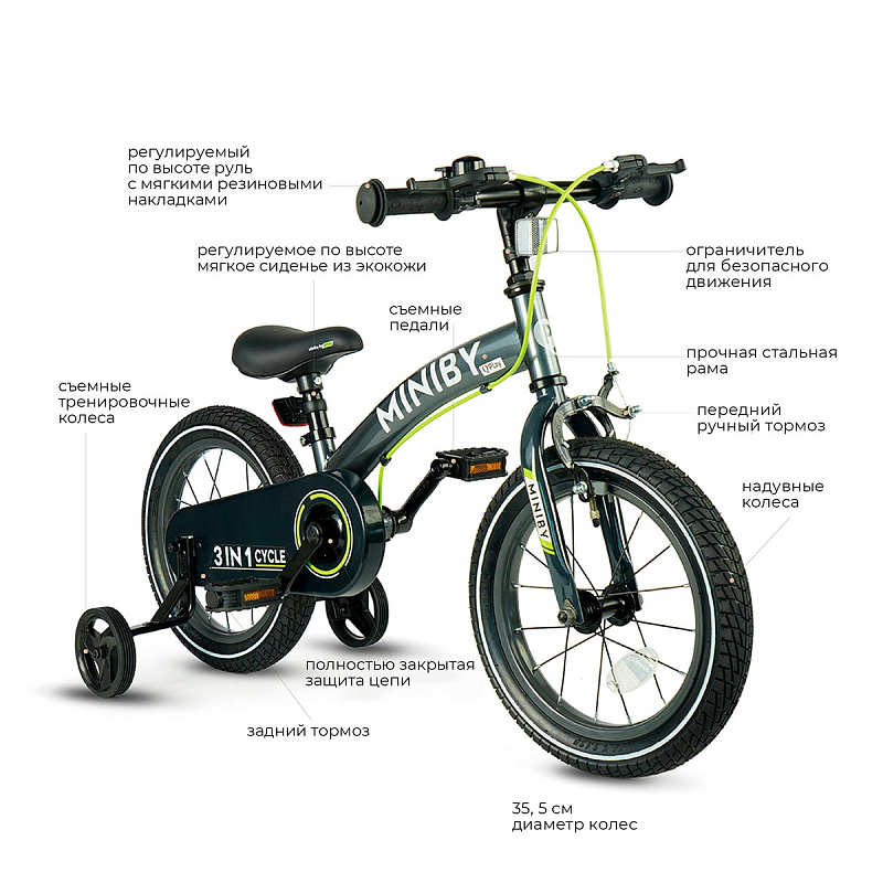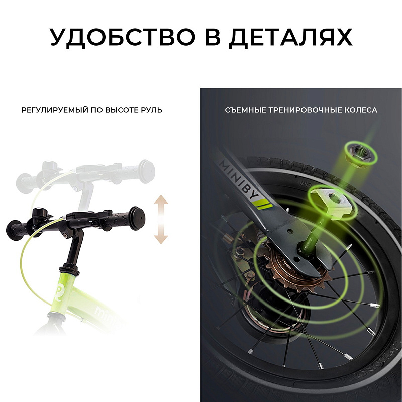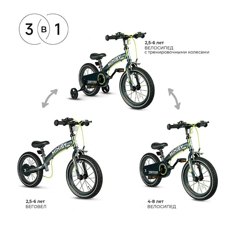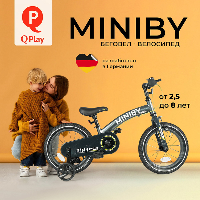 Велосипед - беговел 3в1 QPlay MiniBy (Кьюплей Минибай) – это уникальный детский транспорт, который сочетает множество функций и возможностей для ребенка и его родителей. В начальной стадии его можно использовать как беговел, а когда ребенок подрастет, QPlay MiniBy легко трансформируется в четырехколесный велосипед или двухколесный велосипед. Увеличенные боковые колеса помогает преодолевать препятствия и неровности. Высоту сиденья и руля можно настраивать в зависимости от роста ребенка.