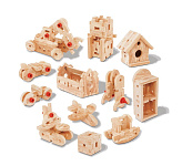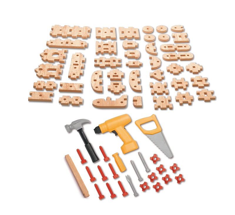 - детали легко стыкуются при помощи отверстий и пазов, а также болтов, гаек и шурупов, что помогает малышам развивать зрительную моторику и координацию
