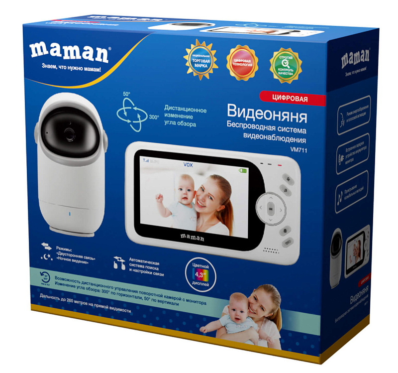 Автоматический режим ночного видения обеспечивает наблюдение за ребенком в темной комнате.