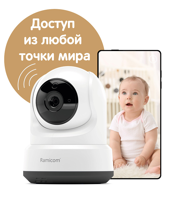 Камера оснащена мягким LED-ночничком, который можно включать удаленно. Обычно камеру видеоняни размещают на горизонтальной поверхности или на стене с помощью крепления из комплекта. Но производитель так же предусмотрел специальное отверстие с резьбой для штатива на дне камеры. Используя подходящий гибкий штатив (не входит в комплект), камеру видеоняни можно разместить, например, на элементах мебели или на ручке коляски. Родительский блок (монитор) уже оснащён ёмким аккумулятором. Во время прогулок и путешествий, где подключение к розетке невозможно, камеру видеоняни Ramicom можно подключать к вашему портативному аккумулятору (пауэр банку).