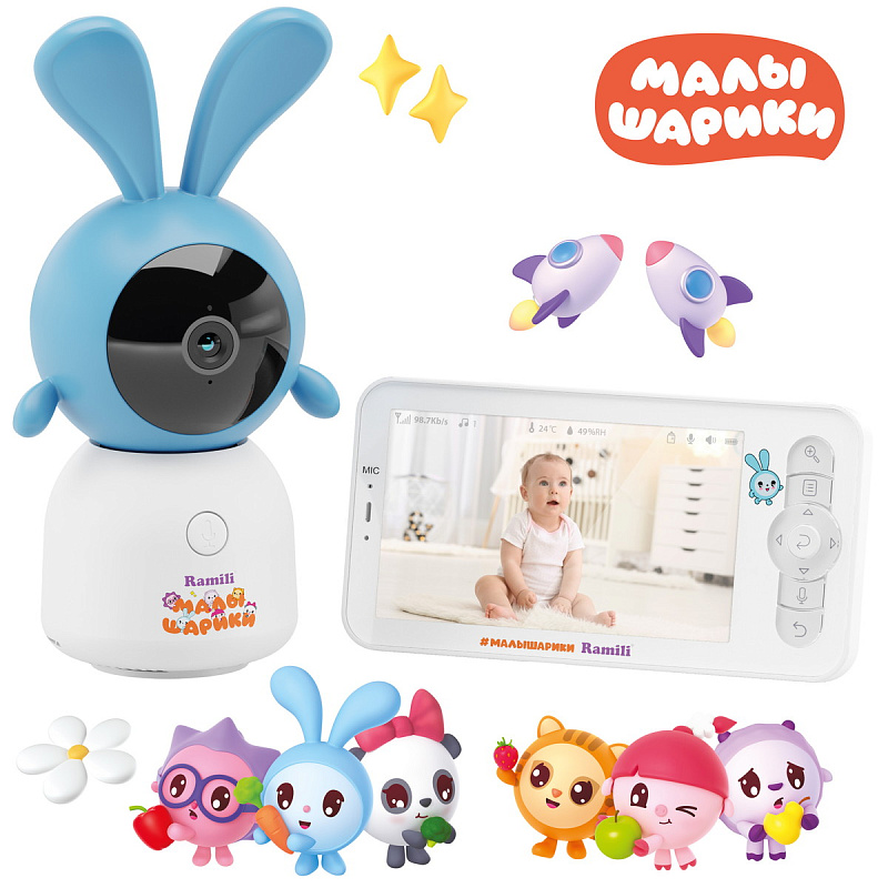 Дизайн этой видеоняни Ramili Baby RV100KROSH выполнен по мотивам серии популярных мультфильмов для самых маленьких зрителей – Малышарики. Уникальный и забавный дизайн камеры порадует малыша и отлично впишется в интерьер любой детской комнаты.