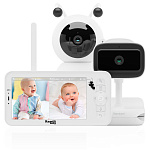 В комплект этой видеоняни входит монитор и две камеры. Одна камера с поворотным механизмом. Вторая камера с креплением-прищепкой на гибкой ножке и встроенным аккумулятором. Цифровая видеоняня от известного производителя детских товаров высокого качества с обнаружением движения и датчиком звука, которые оповещают родителей, если малыш проснется. Видеоняня отличается надёжной связью, хорошим видеоизображением и звуком. В каждую камеру встроен многоцветный ночничок, который наполняет детскую комнату мягким LED-светом, помогая малышу спокойно заснуть. Предусмотрены термометр, гигрометр для измерения влажности и возможность записывать видео на карту памяти.