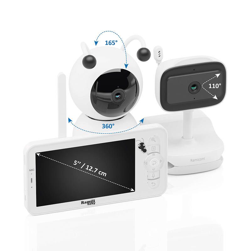 - HD 720p высокое качество видеоизображения на дисплее родительского блока с диагональю 12,7 см / 5 дюймов.