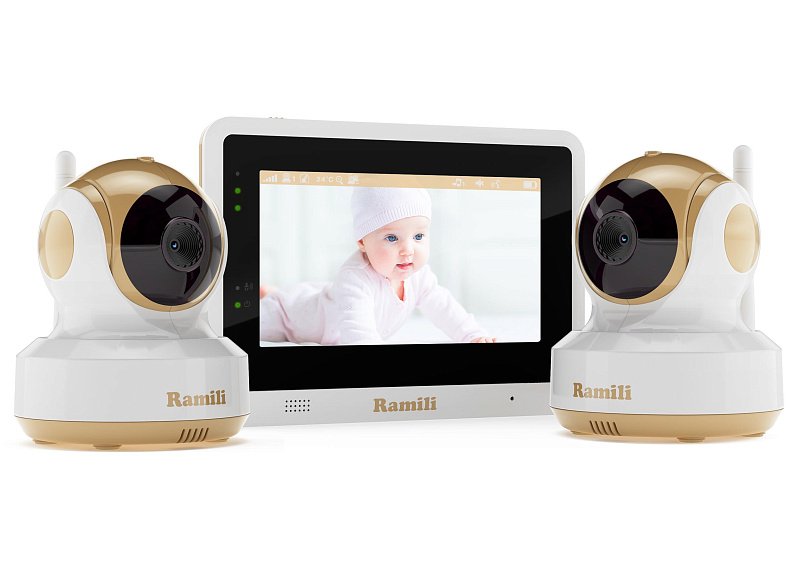 В комплект входят две камеры. Двухрежимная видеоняня Ramili Baby RV1500 от известного английского производителя товаров для мам и малышей. Оснащена большим сенсорным дисплеем с диагональю 12,7 см. (5 дюймов) и поворотной HD камерой высокого разрешения, а также всеми необходимыми функциями, которые помогают комфортно использовать устройство в повседневном уходе за крохой. Вы можете одновременно наблюдать за ребенком на экране родительского блока и на смартфоне или планшете.