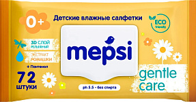 Влажные салфетки Mepsi Gentle Care детские ромашка, 72 шт