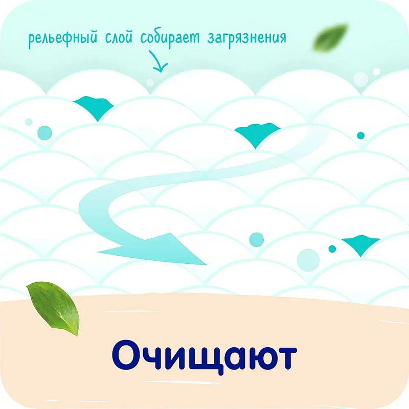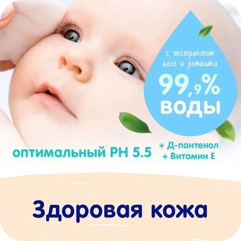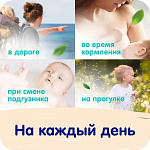 Нетканое полотно, лосьон пропитывающий, Содержат D-Pantenol, Содержат Витамин Е, Не содержат спирта, Без запаха, Без липкого эффекта, Содержат 99% воды, Гипоаллергенные, Рельефная поверхность салфеток 0+