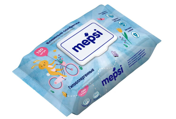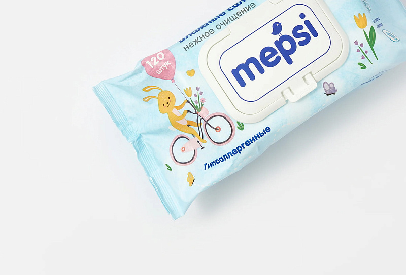 Влажные салфетки Mepsi гипоаллергенные детские, 120 шт